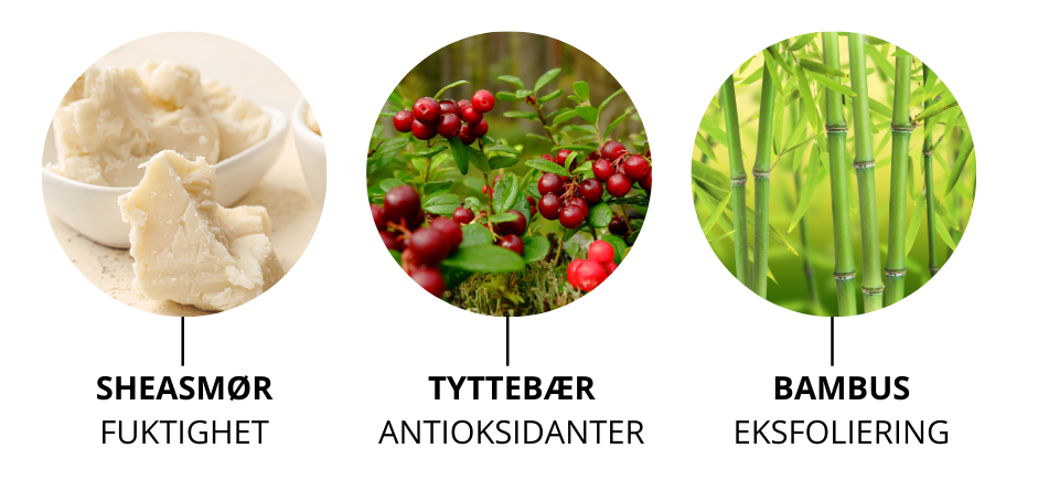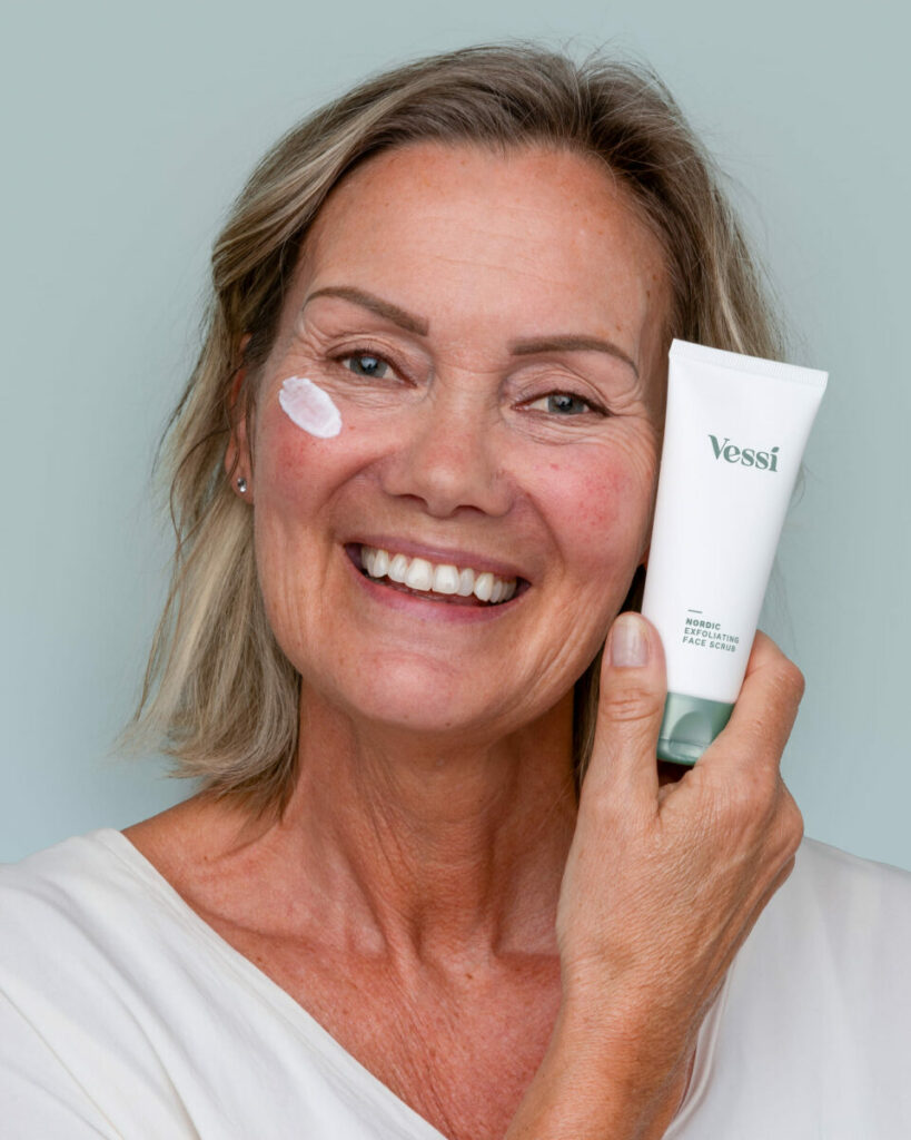 Vessi Nordic Exfoliating Face Scrub inneholder nøkkelingrediensen bambusekstrakt som består av naturlige enzymer som effektivt eksfolierer uten å irritere huden. Mykgjørende og pleiende ingredienser fra sheasmør og nordiske tyttebær bidrar til å bevare hudens fuktighet. Dette gjør at denne ansiktsskrubben passer de aller fleste hudtyper, og er mild nok til å kunne brukes 1-3 ganger i uken.